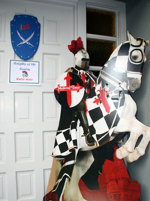 Entry: Medieval Times gave me this huge knight and horse cardboard stand-up which I used to greet guests. I also placed a shield my husband borrowed from his work with a sign telling my "knights" to enter.