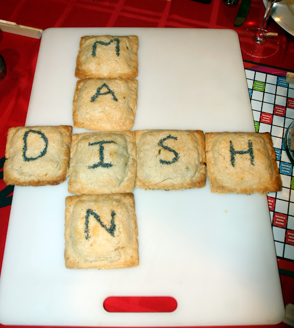 For the main dish, I made ground beef turnovers and shaped them into squares. I made a slight indentation in the pastry to create a letter, brushed melted butter inside the indentation, and sprinkled poppy seeds on top of the butter. This recipe for turnovers takes a long time to make, but they are always a big hit....so yummy!