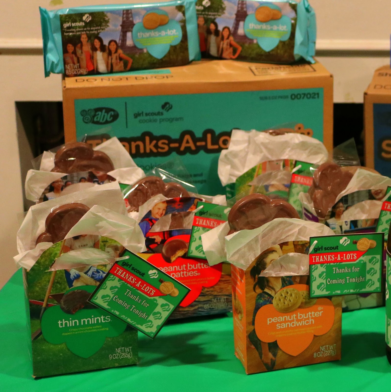 Favor: The Thanks-A-Lot cookies make an easy favor to thank guests for coming. I made favor bags/boxes out of Girl Scout cookie boxes just cutting them with scissors.