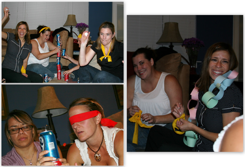Decor: Oh yes, conservative little me hosted a stripper themed party! After entering, guests were immediately giggling at the centerpiece....my metal shower rod with a blow up stripper doll on it!! There were also dollar bills spread out on the table to add a little more fun, and I wore some black lingerie with tall boots to play up the theme even more!